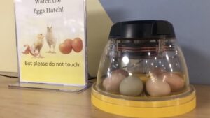 March 9, 2023 • Representatives from the Natick Community Organic Farm brought some chickens to the Needham Free Public Library...